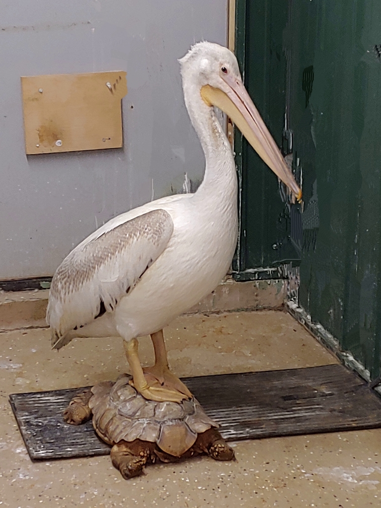 We have tried to integrate her with the other two pelicans, but it is a slow process.