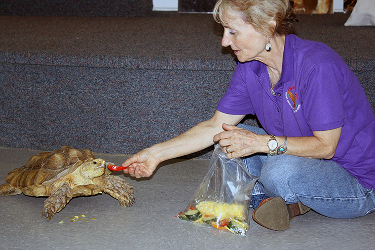 As I sit on the floor hand feeding Bower, our sulcata tortoise of 22 ½ years old, I marvel at how far he has come. When he was first brought to us, he was in a critical state. Due to a severe calcium deficiency and malnutrition, he could only pull himself across the floor. His shell was deformed and caved in instead of being tall and rounded. He had a soft stomach, was severely underweight, and could not bend his neck. It was one of the most heart breaking scenes many of us had seen.