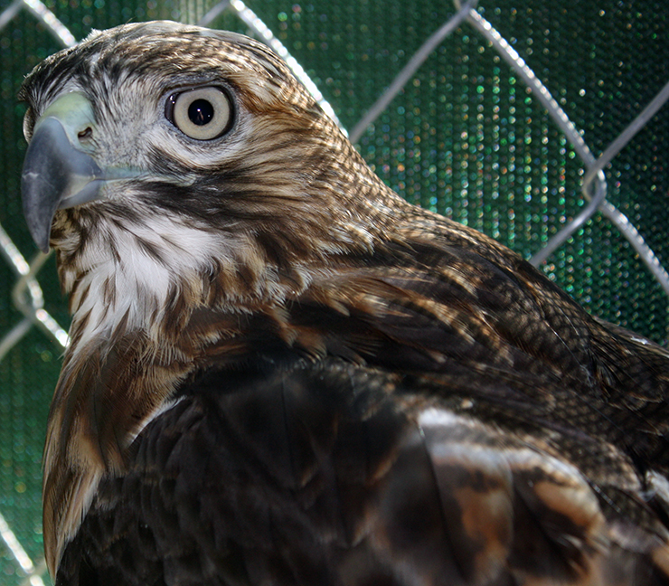 We’re currently in the process of training several new educational animals, including a red-tailed hawk named Diva. Diva came to us from another facility where she was raised. It turned out that she had imprinted on humans and could not be released. They sent her to us, and she began her training several months ago.