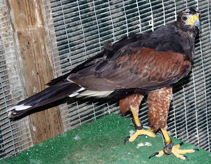 We are excited to announce the newest addition to our educational team, Indy the Harris’s hawk! Harris’s hawks are native to the southwest in the desert. They live in family groups of up to six or seven birds, all of which can live in a single cactus. They hunt and live cooperatively, meaning that everything they do, they do as a family unit.