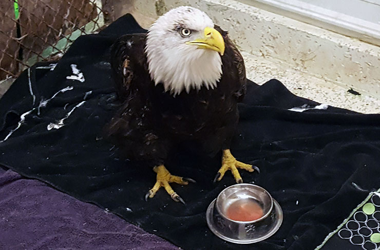Our 80th Eagle Maverick has a true Eagle Spirit. He came to us with an old compound fracture. 4 inches of his right wing were taken off and then he developed a respiratory infection. The vets have been coming out and seeing him and he is on 4 different kinds of medicine.